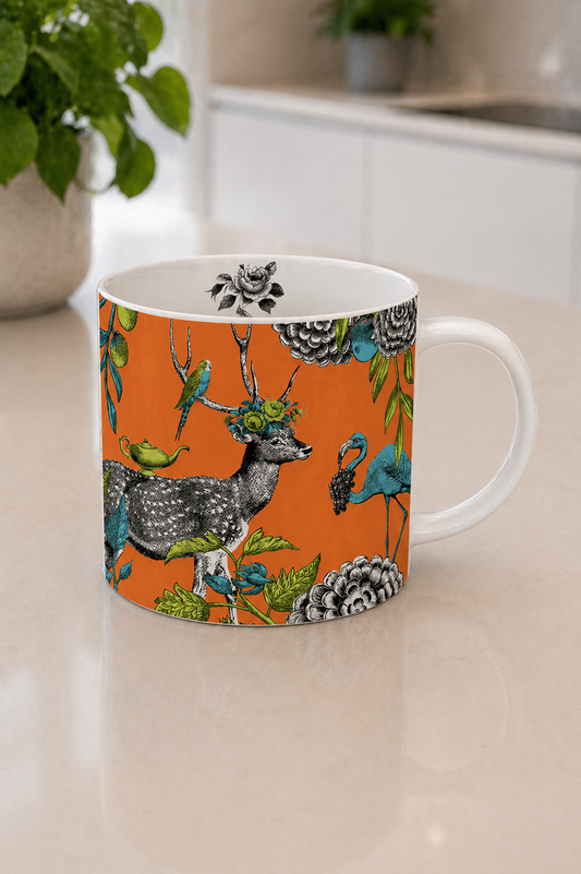 Menagerie Deer Bone China Mug Orange